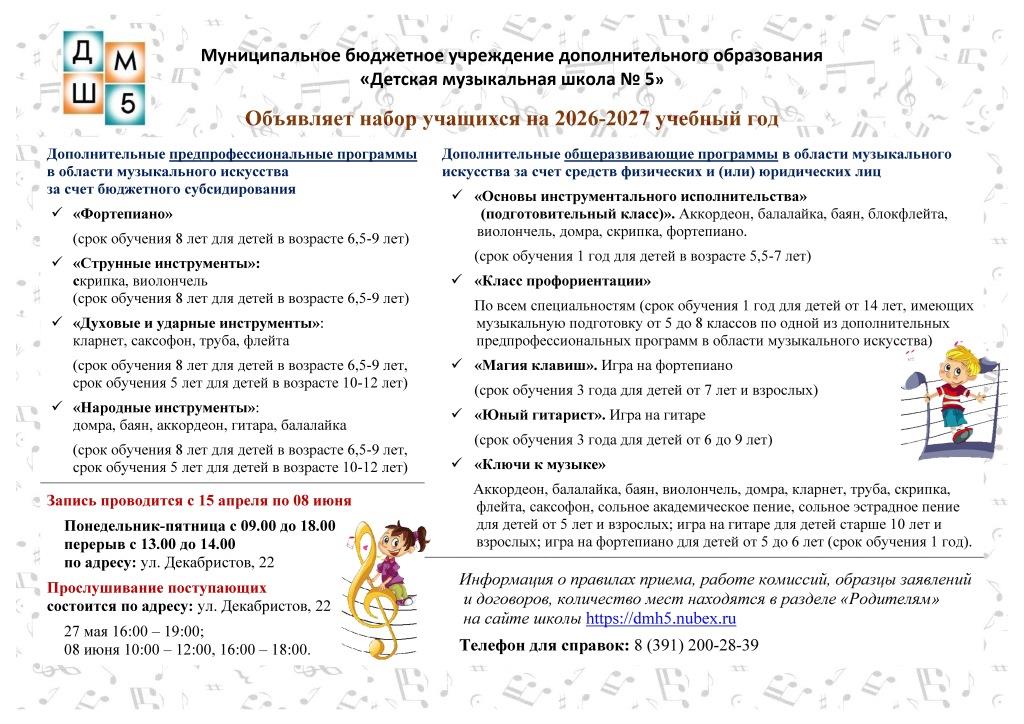 Прослушивание поступающих состоится по адресу: ул. Декабристов, 22
