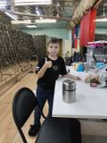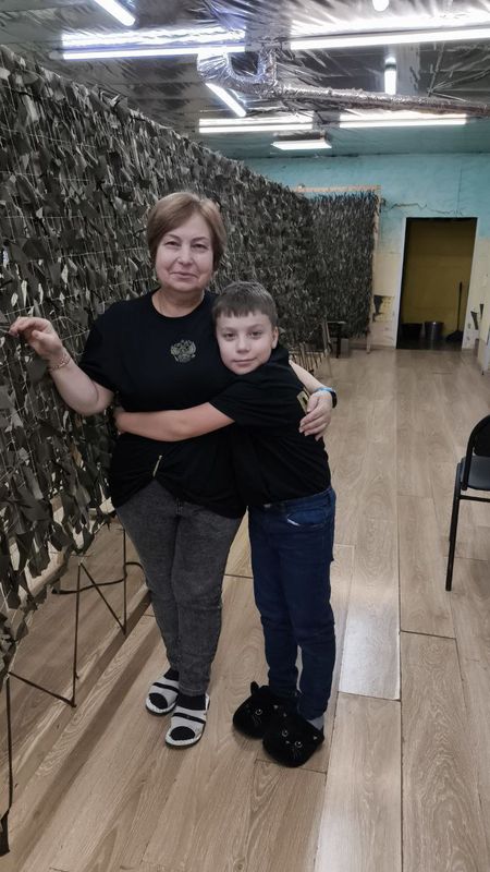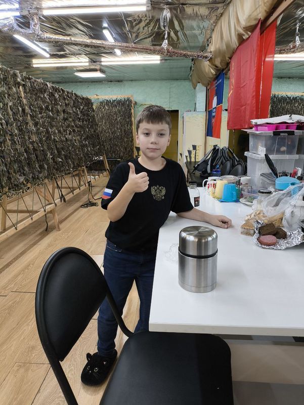 Пётр Будим, ученик 1 класса музыкальной школы 5, вместе с бабушкой помогает плести маскировочные сети для фронта, для Победы.