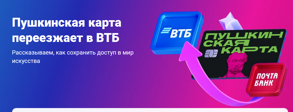 «Пушкинская карта» переезжает в Банк ВТБ с 2026 года