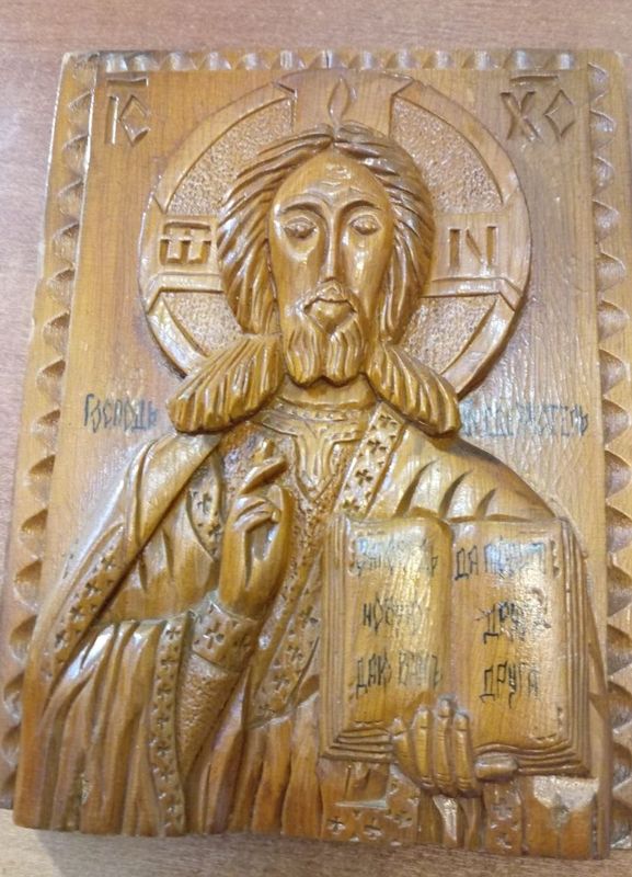 В акции принял участие охранник нашей школы Игорь Романович, он передал в дар солдатам икону, сделанную своими руками.