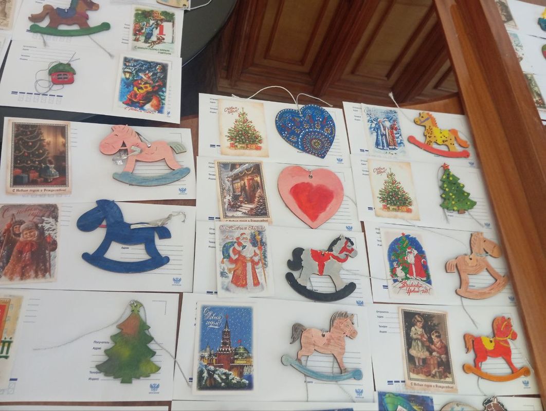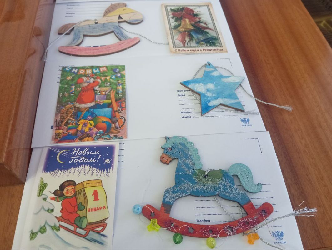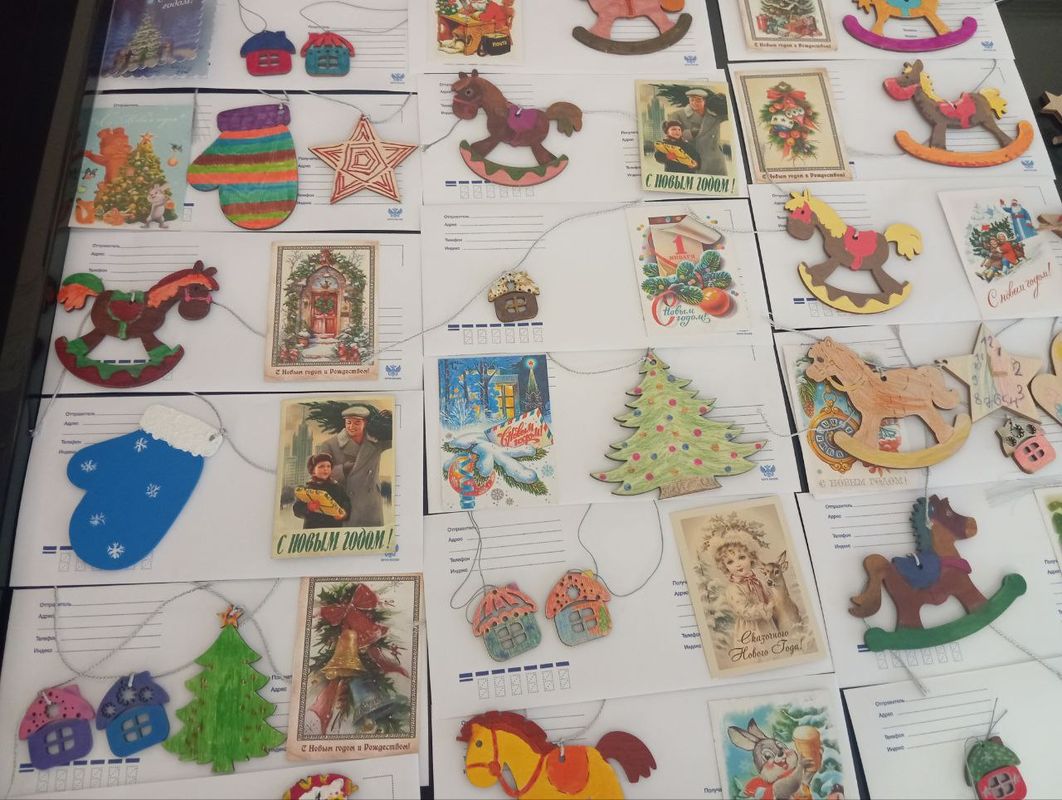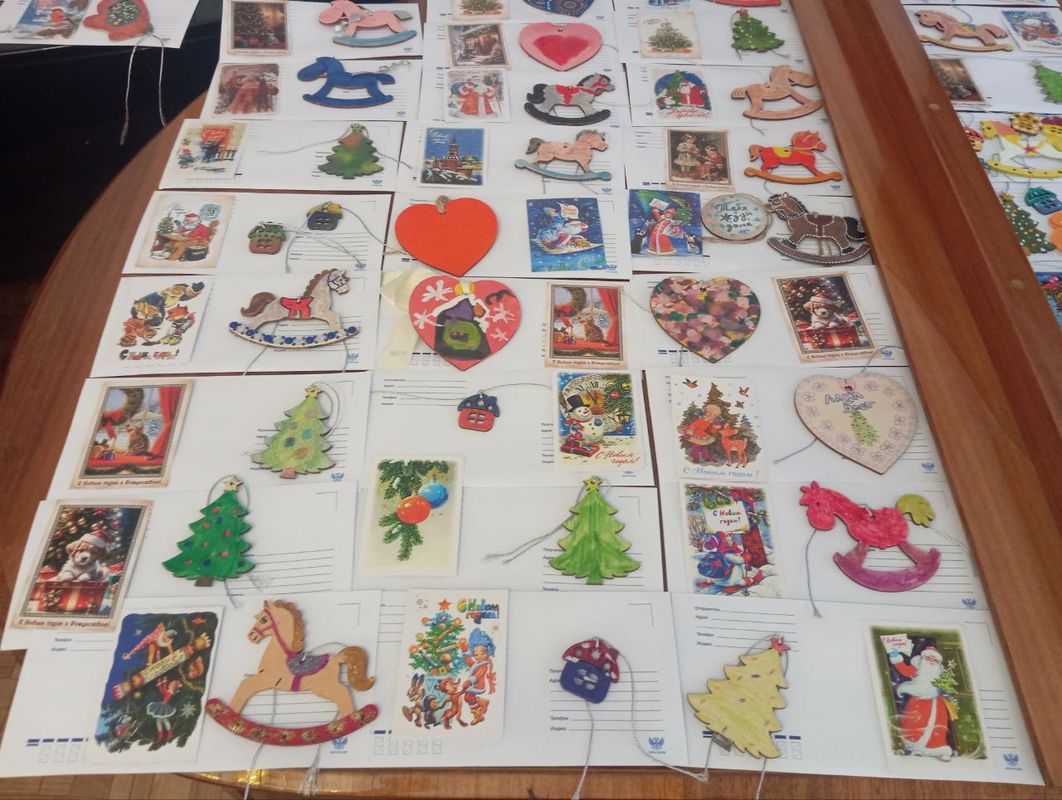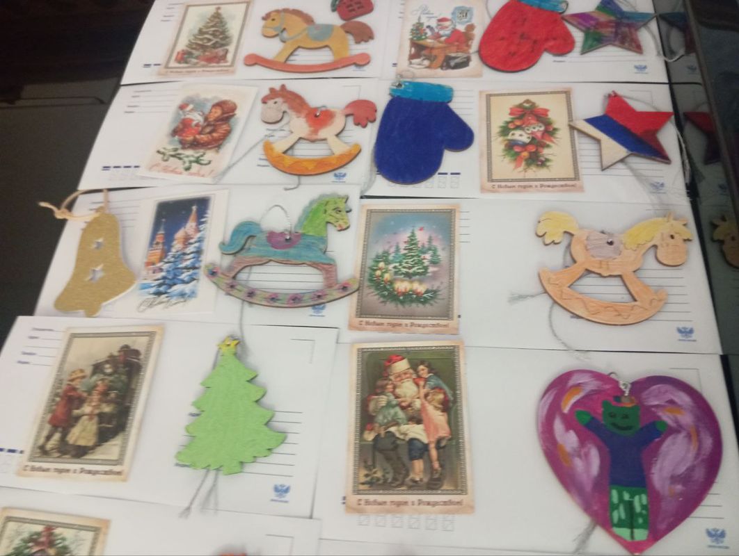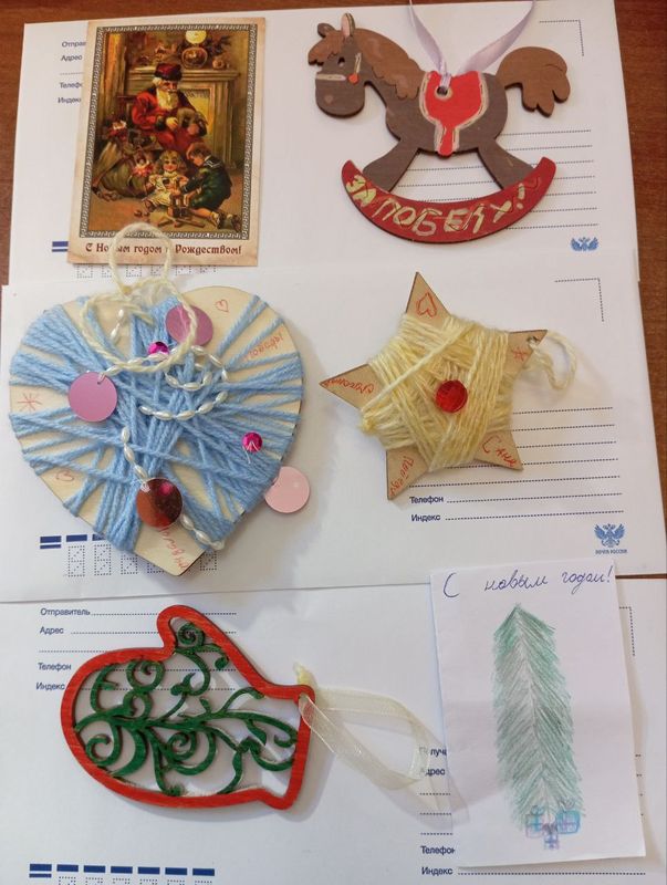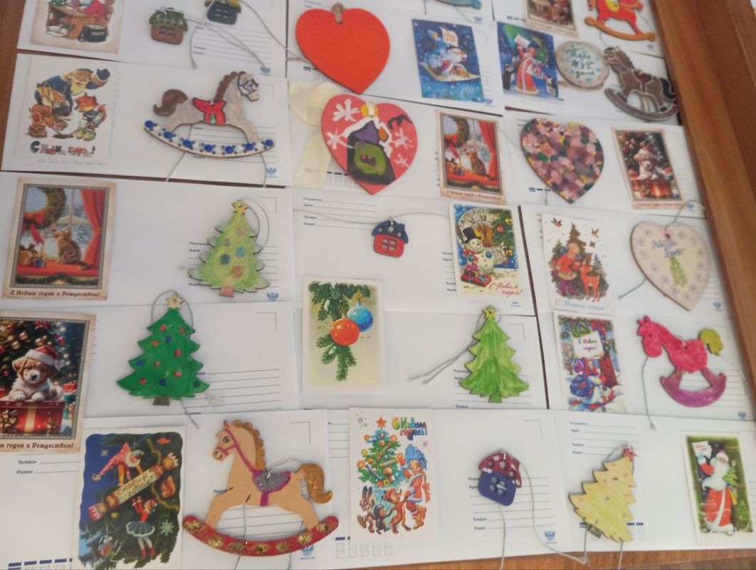 Ребята разрисовали новогодние фигурки и подписали более 100 открыток с поздравлениями и пожеланиями, которые будут переданы российским солдатам.
