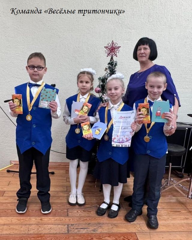 Команда «Весёлые тритончики» (преподаватель Молина Людмила Константиновна) заняла почётное 3 место в игре по сольфеджио «Умники и умницы»! В составе команды честь школы защищали «малыши» - учащиеся 2 класса Колины Глеб и Эльвина, Курак Ксения и Сидоров Фёдор.