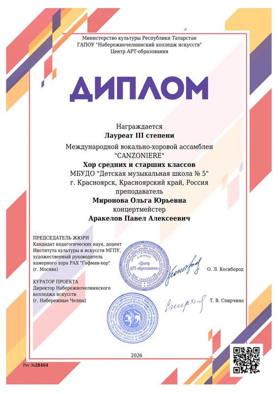 концертмейстер Аракелов Павел Алекссевич) награжден Дипломом Лауреата III степени.