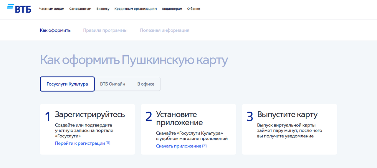 найдите раздел/баннер о «Пушкинской карте»;